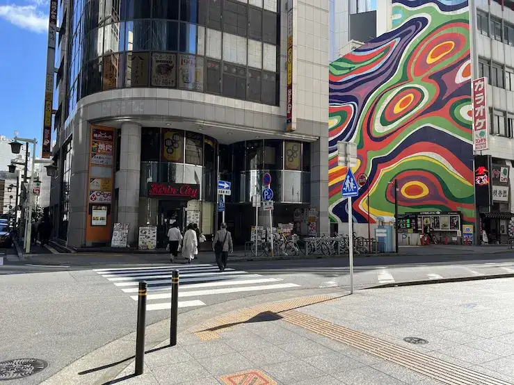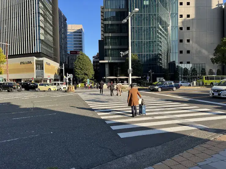 右手に交番がある横断歩道を目指します。