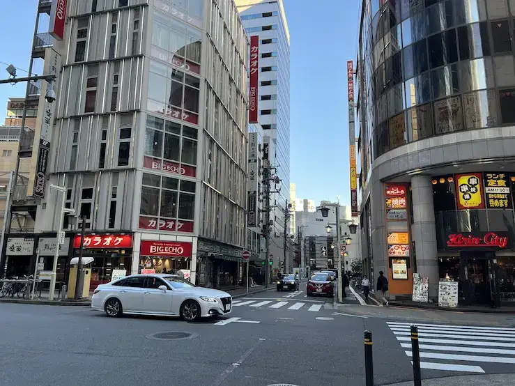 カラオケ ビッグエコーさんのビルがある交差点を横断して、右手に進みます。
