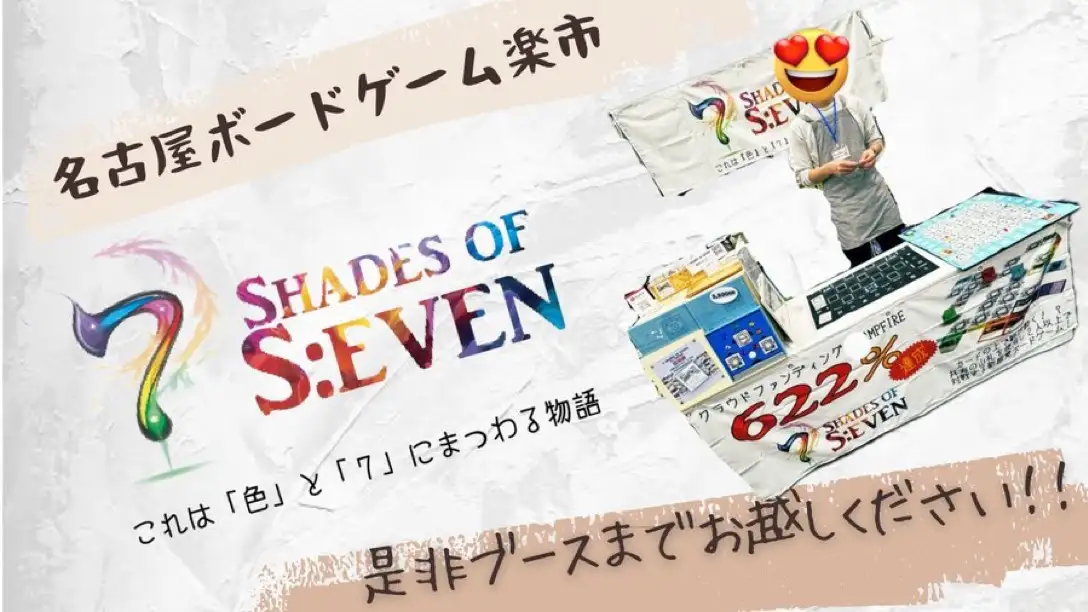 【楽市より】 地元・名古屋への愛と、TCGの面白さをより多くの人に届けたいという純粋なパッション。YGMさんのお話を聞いていると、こちらもワクワクしてきますね。15種の効果を覚えるだけで、深いタクティクスが楽しめる『シェイズオブセブン』。ぜひ体験してみてください!