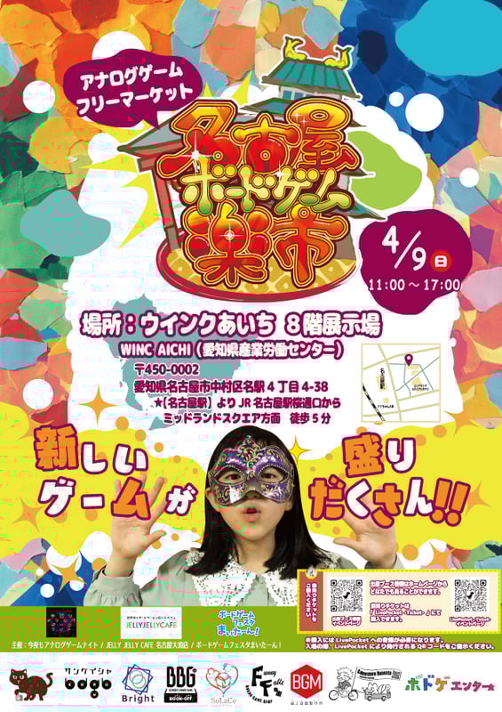 名古屋ボードゲーム楽市(4/9(日)11時〜17時 会場:ウインクあいち8階展示場)事務局は、本日3/1 17時より、一般チケットの販売を開始いたします!