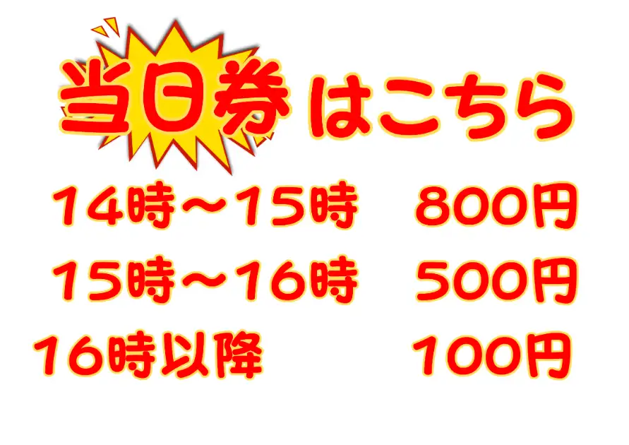 14時〜15時までの入場は800円です。これは、WEBで購入するノーマルチケットよりも50円高い価格となります。