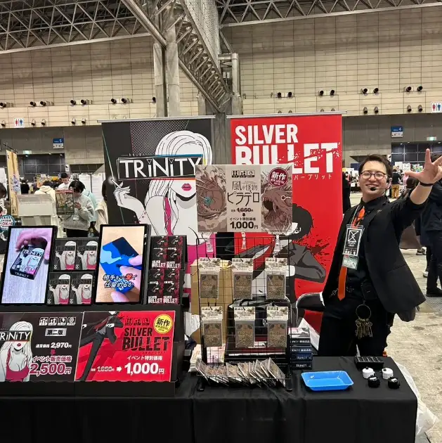 桃居土さん: 「実は、あれが私の“即売会デビュー”だったんです。 楽市で即売会童貞を卒業しました(笑)。 出展者さんの装飾がすごくて、会場全体が楽しそうで。 他の地方イベントより来場者が多い印象でしたね。試遊スペースは少し狭いくらい。」
