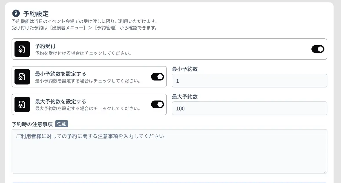 - [出展者メニュー]>[予約の管理]が閲覧できるようになります
