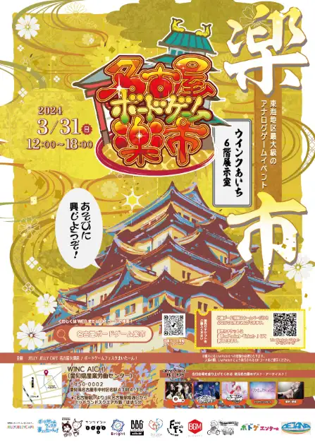 2024年3月31日、ウインクあいち6階展示場にて、第3回名古屋ボードゲーム楽市が開催します。