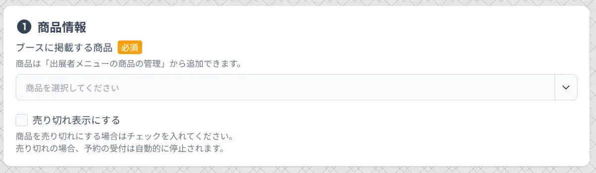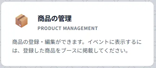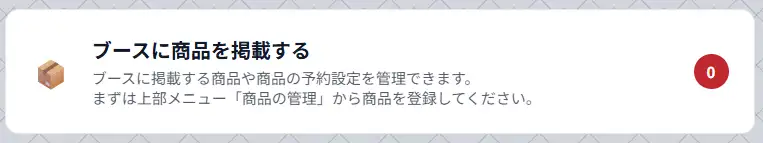 【③ブースに商品を掲載する】では、このメニューで商品を登録しておく必要があるのでご注意ください。
