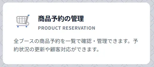 イベント当日に予約者へ商品を渡したかどうかの管理ができます。