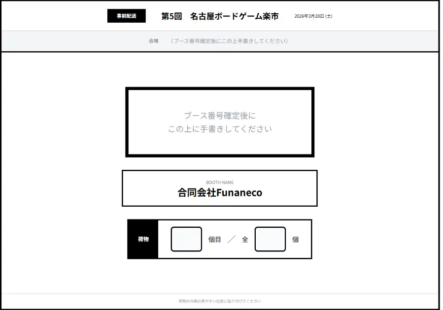 名古屋ボードゲーム楽市ではイベント前日に荷物の受付をしています。