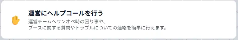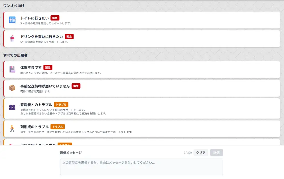 ボタンをタップするか、直接メッセージを入力することで運営ブースへメッセージが送信できます。