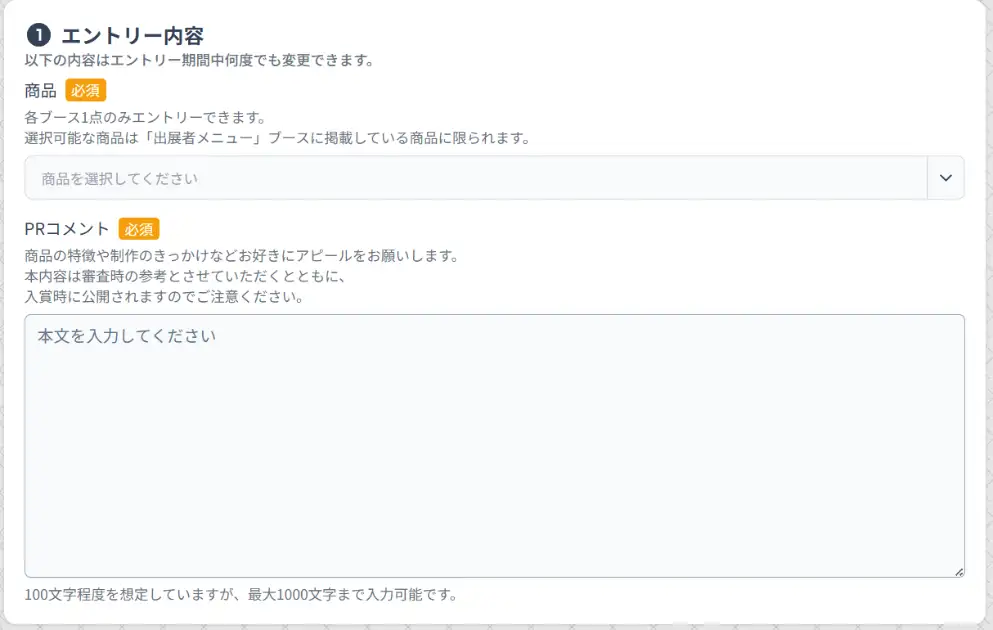 ③ブースに商品を掲載するによって、ブースに掲載した商品のみ、各ドラゴン大賞へエントリーできます。
