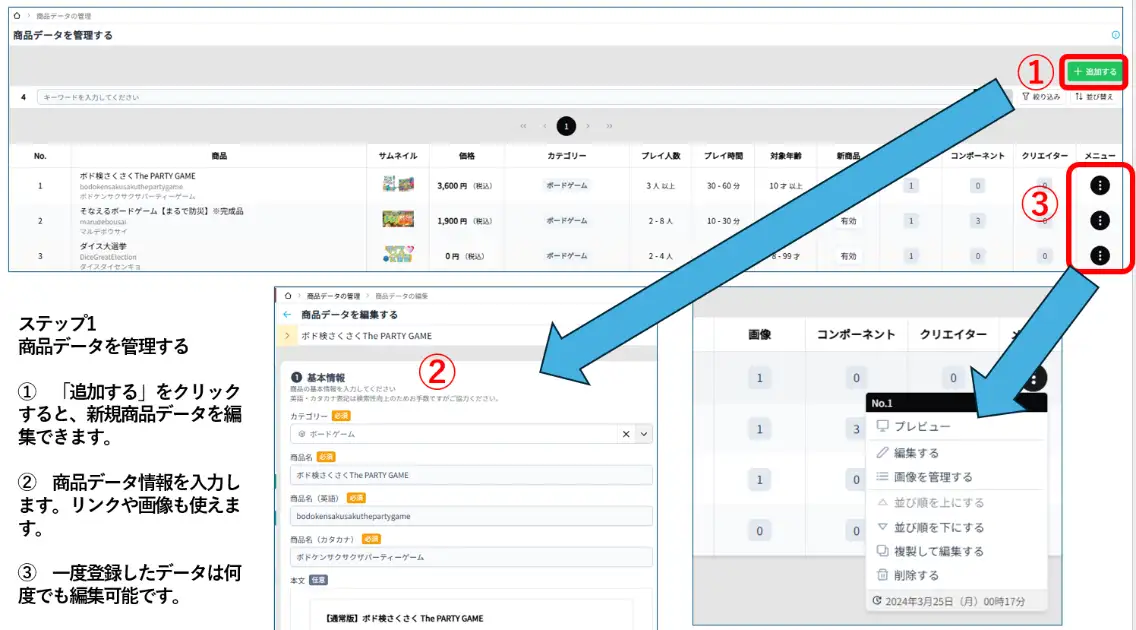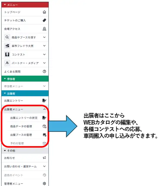 WEBカタログの編集方法を簡単に図説しています。出展者の方はぜひ、ご確認ください。