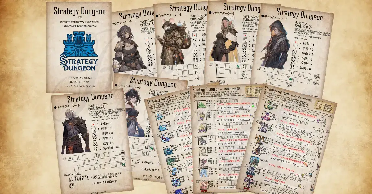 冒険者たちがパーティーを組んでダンジョン探索を楽しめる、紙ペンとダイスを使った手軽なゲームです。一見キャラクターの個性が強すぎるように感じますが、それぞれの個性がゲームを楽しむために重要な役割を果たしています。プレイするたびに異なる展開を楽しめるため、キャラクター同士の組み合わせやダンジョン内の選択肢によって、同じ展開になることは少ないでしょう。ボードゲーマーだけでなく、TRPGプレイヤーにも親しみやすい作品です。