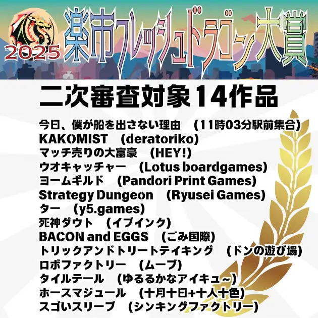 楽市フレッシュドラゴン大賞2025 一次審査通過作品発表