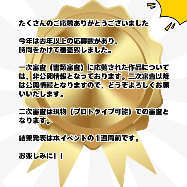 二次審査の発表はおおよそ、3/23頃となりますのでどうぞよろしくお願い致します。