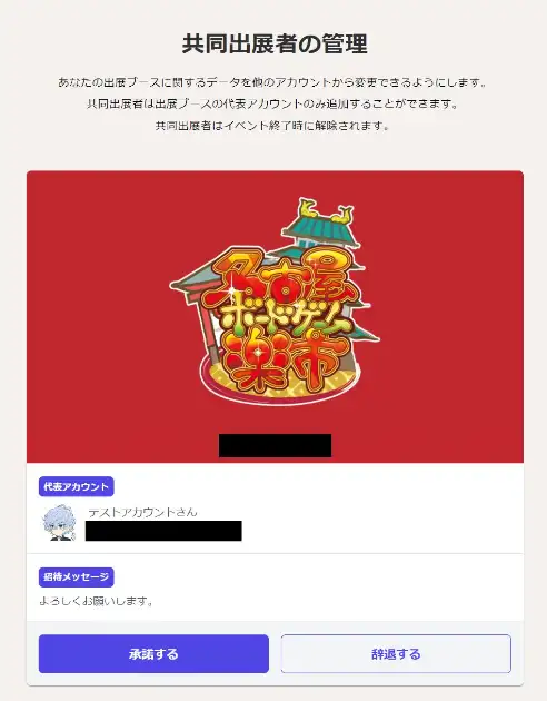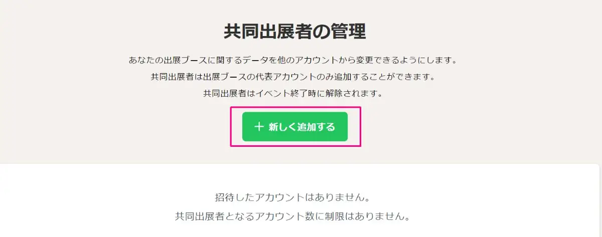 出展者ではないアカウントも出展ブースの管理が行えます。