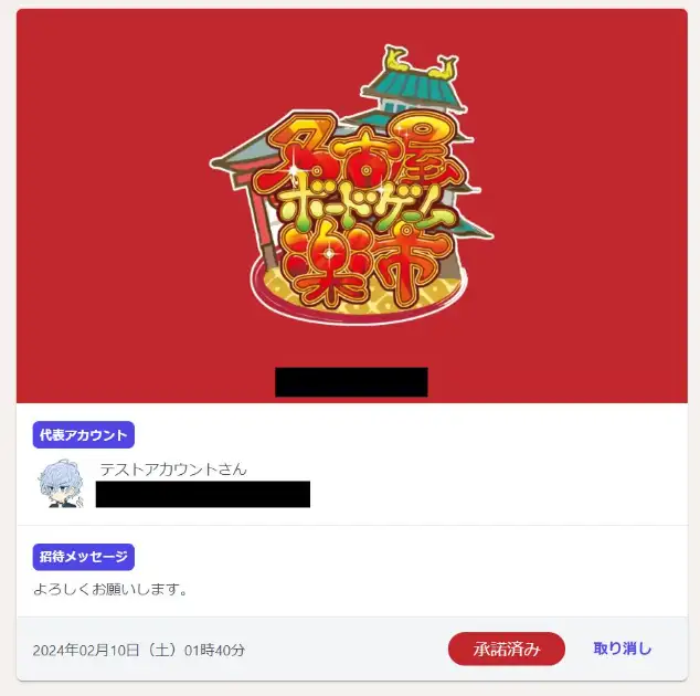 ② 招待の内容を確認して「承諾する」または「辞退する」を選択してください。