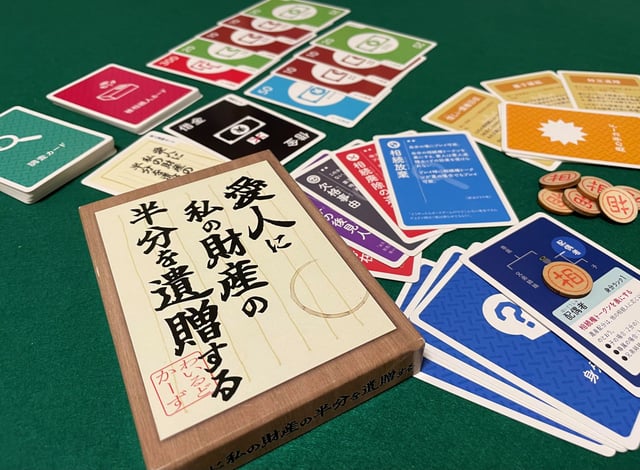 財産開示フェイズで集めた手札を1枚ずつ切りながら、遺産の総額をいじったり、相続人をその地位から蹴落としたり、出し抜いたりします。