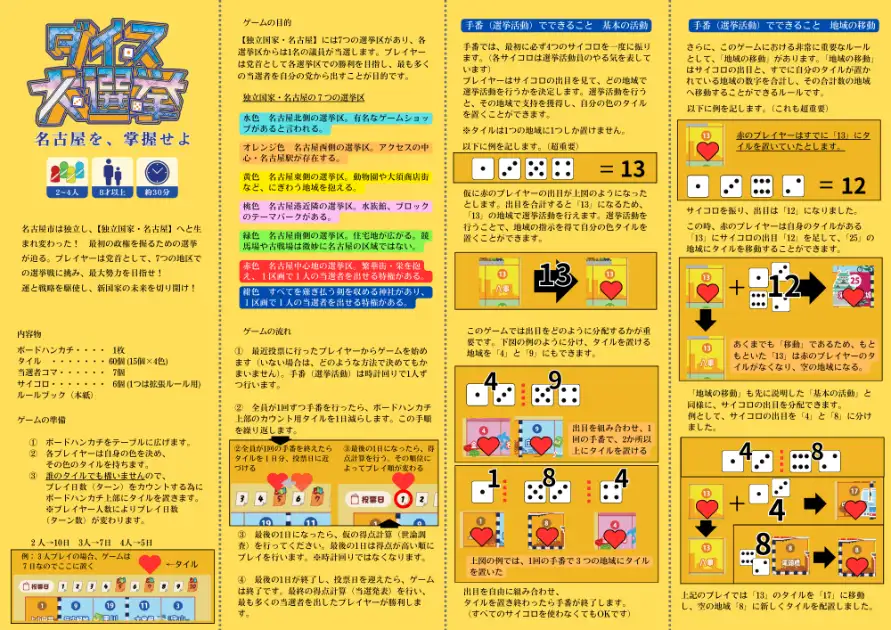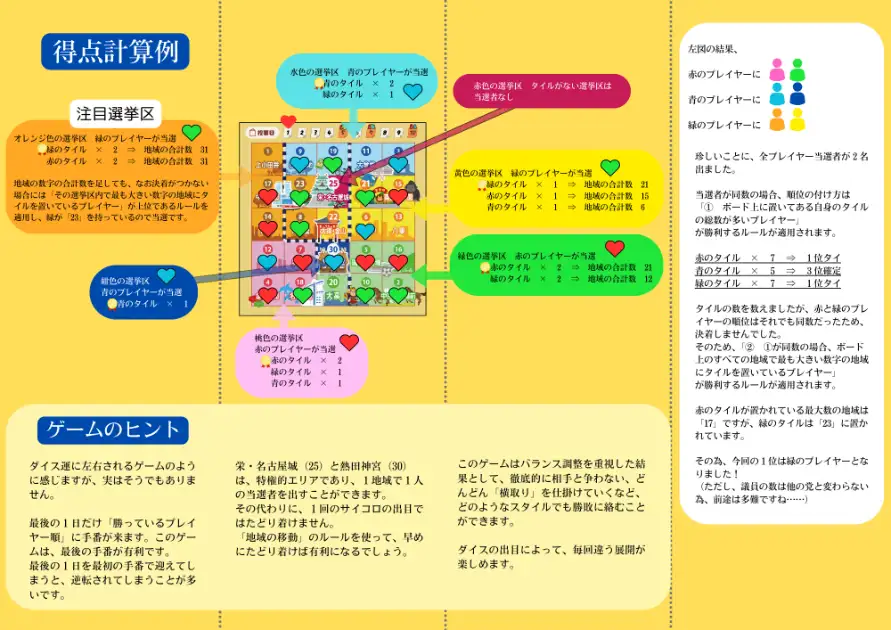 ダイスと戦略で、多くの当選者を出し、見事第1党になりましょう!