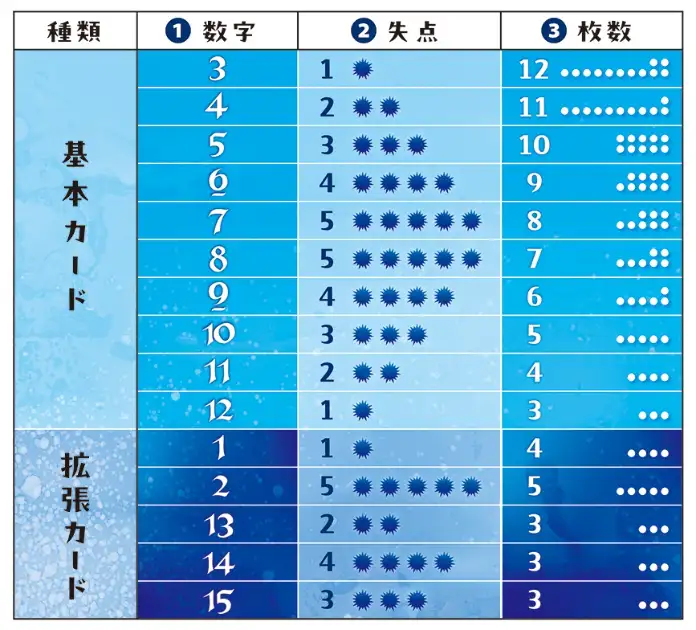 - 手札に残ったサカナの種類で減点が決まる!時には強い数字を捨てて減点を避けるのも戦略だ✨