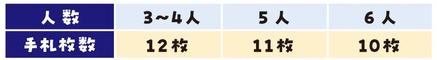 基本カード75枚をよく混ぜ、人数に応じた枚数を手札として配ります。