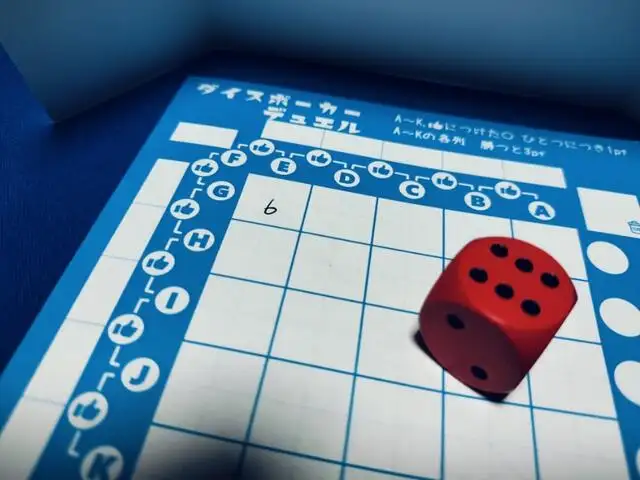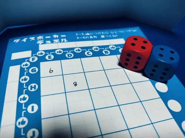 ざっくり紹介すると、5×5のマスにダイス目を記入して、縦横斜め各列でポーカーのような役を競い合う紙ペンゲームになります。