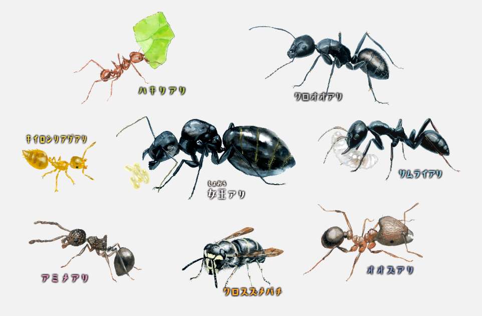 アリは種類によって生態が全然違うんです。女王アリがいないアリ、他の種類のアリを奴隷にするアリ、農業や畜産をするアリまで特徴が様々。本作はそんなアリの生態を再現したアリの巣配置ゲームです。 本作では、通常モードに加えて10種類のアリの生態に基づいた非対称モードを収録。 それぞれの特徴を生かして、毎回違ったゲームを楽しめるようになっています。