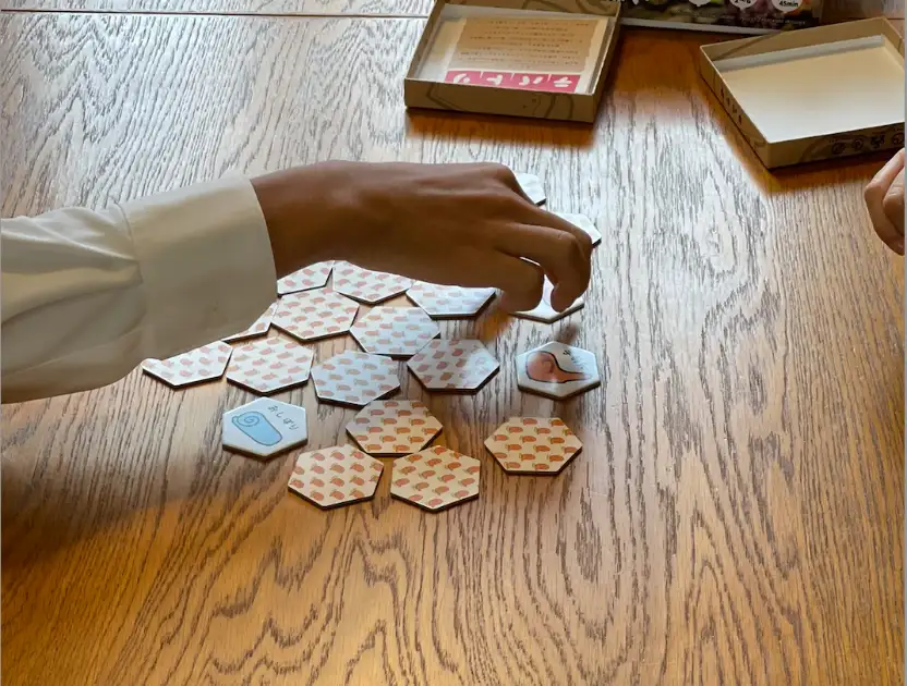 タイルをめくりながら「食べ過ぎ〜(てばさきをめくりすぎた)」とか