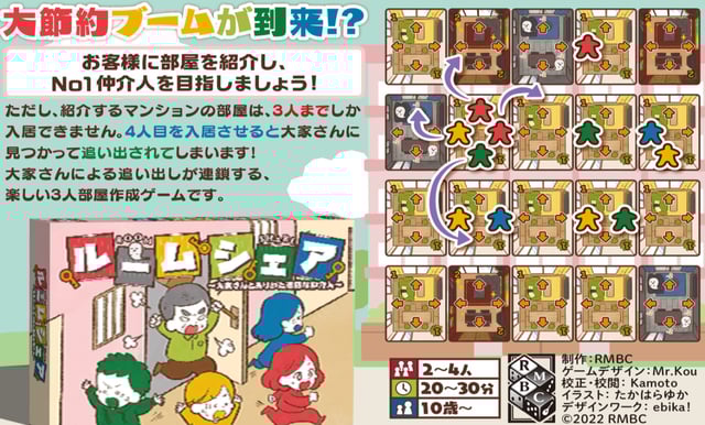 プレイヤーは、ルームシェアの仲介人となり、担当するお客様にルームシェアが可能な部屋を紹介します。