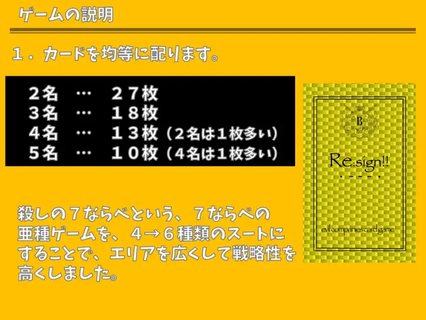 いかに多くのカードを出し切るかを競うカードゲーム「リサイン」