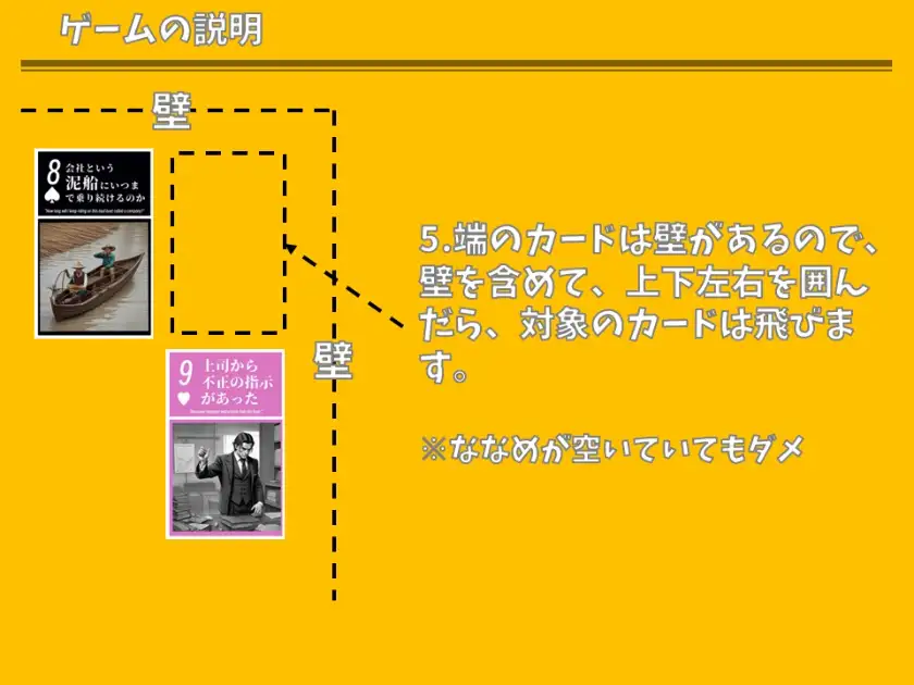 場に出すことで活躍することができますが、まわりを囲まれると場に出すことが出来ず