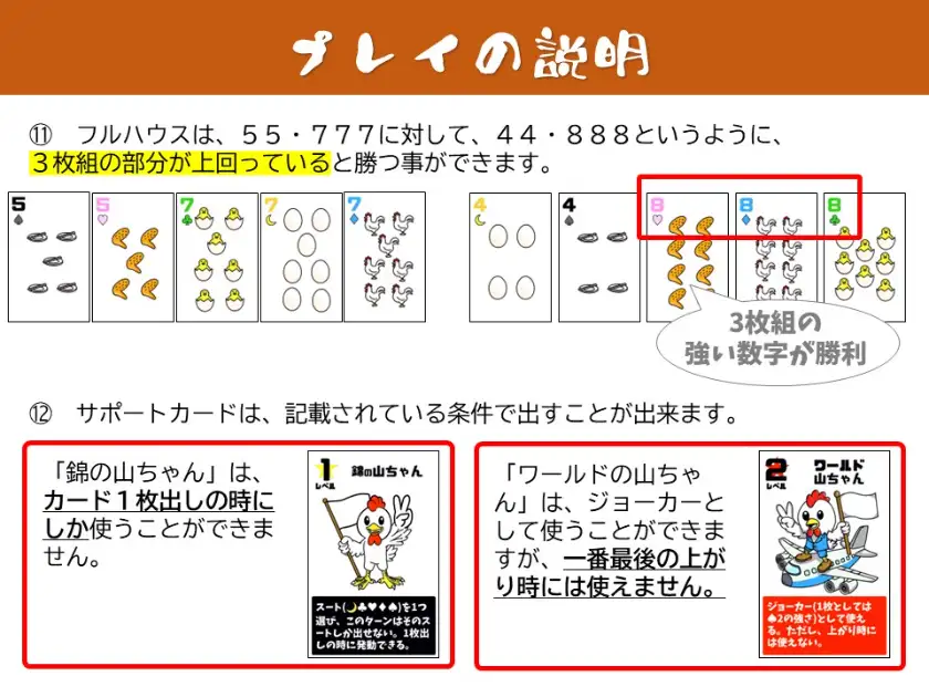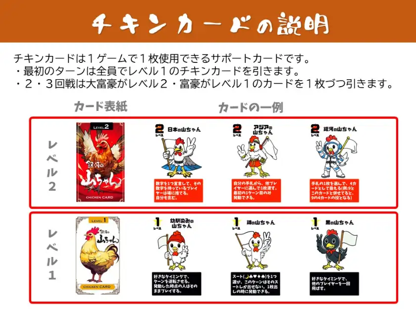大富豪と富豪は次のゲームは特殊能力を持ったサポートカード1枚づつ引いた状態でスタートします。