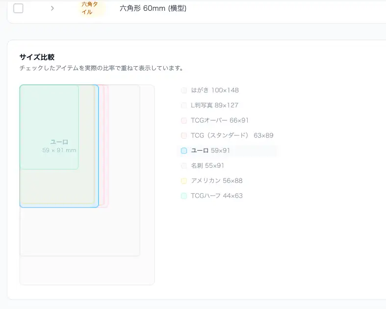 トランプサイズ、ミニサイズ、タロットサイズなど、さまざまなサイズのカードを作成できます。