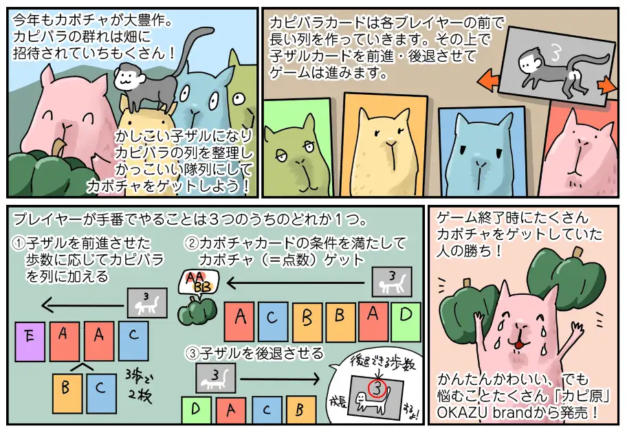 ●説明5分でじりじりした体験が味わえるカピバラ列形成カードゲーム!