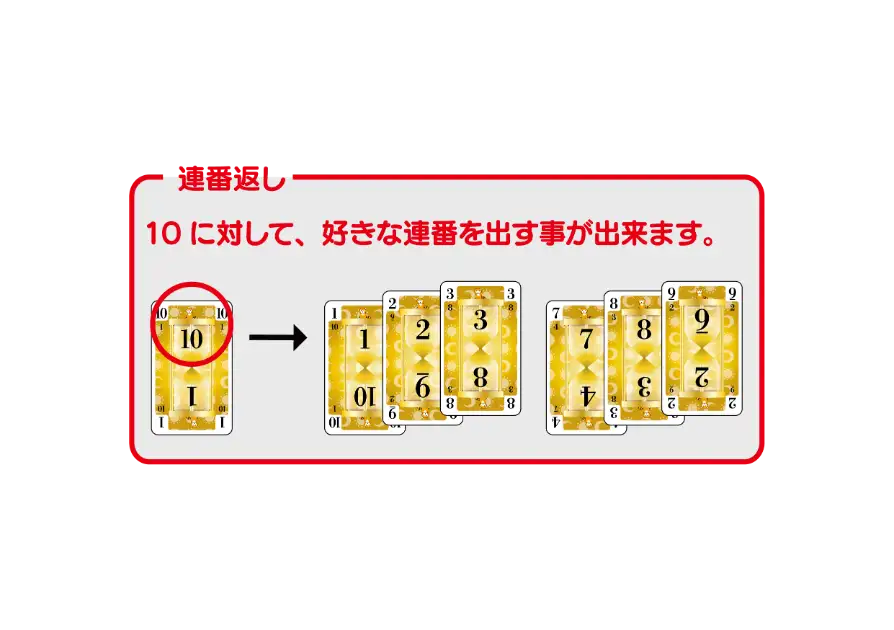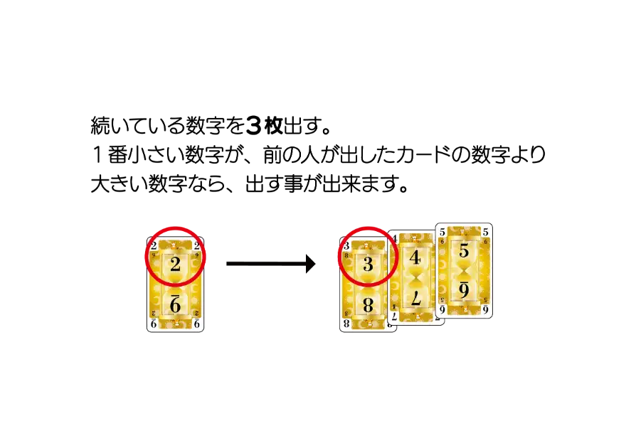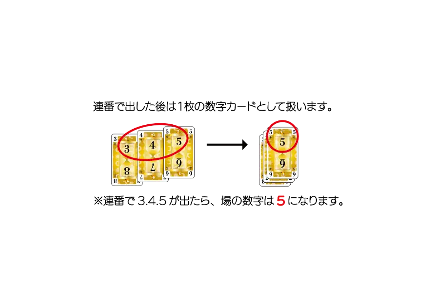 同数や連番で出されたら、次の人はカード枚数は関係無く出された数字に対してカードを出してください