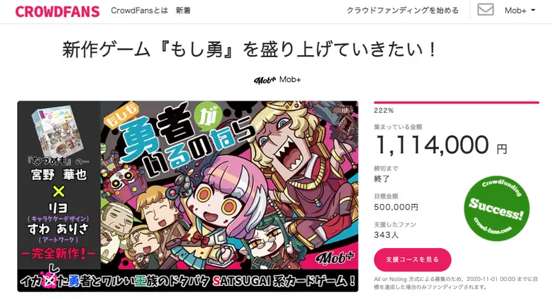 目標金額を大きく上回る「222%」の支援をいただいて製作が決定したゲームです。